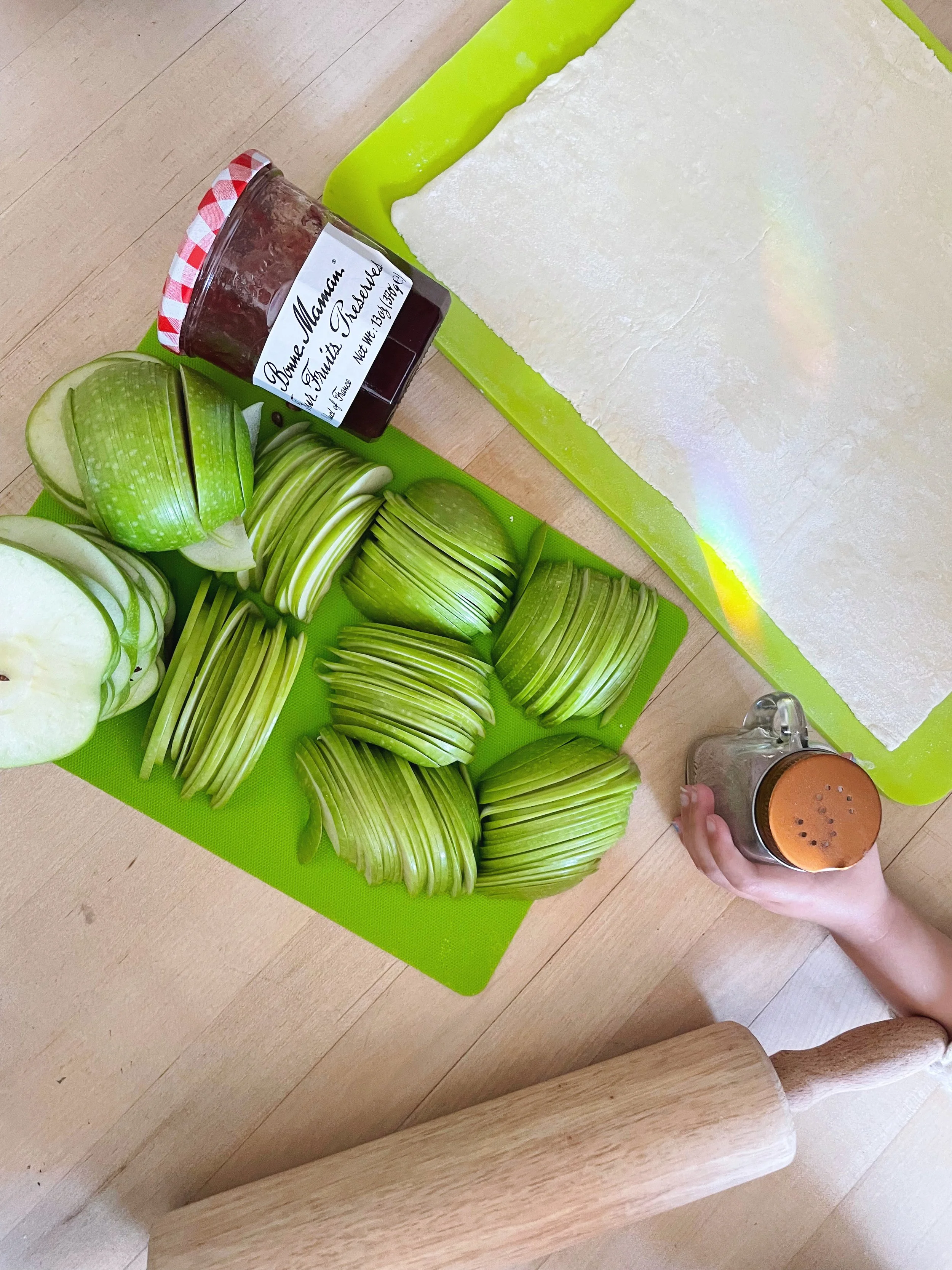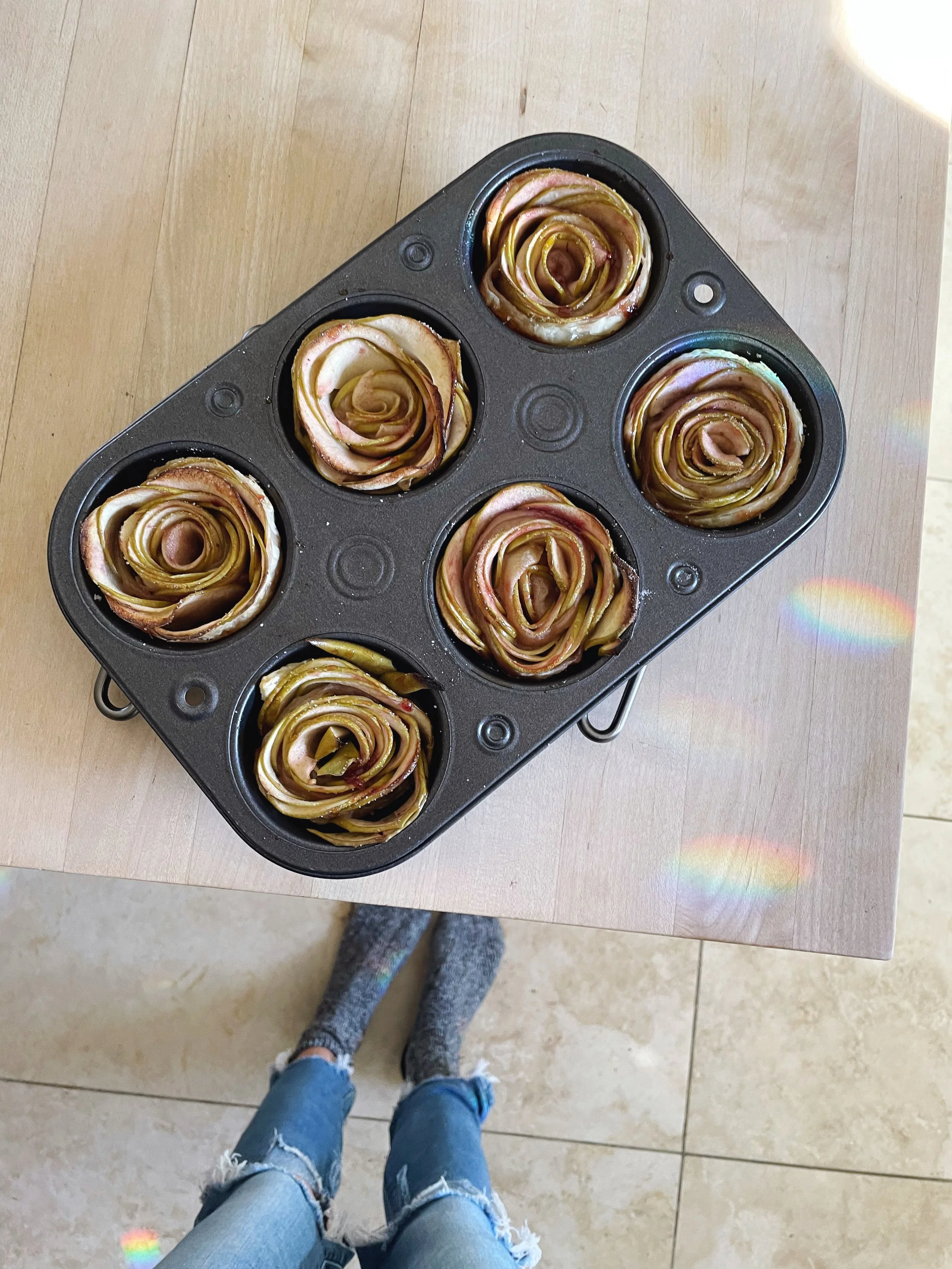 These are so freaking cute. We had extra granny smith apples so we got creative. There’s not much to say other than, holy moly. I had no clue tarts were this simple. I am intimidated by everything that happens in the kitchen LOL