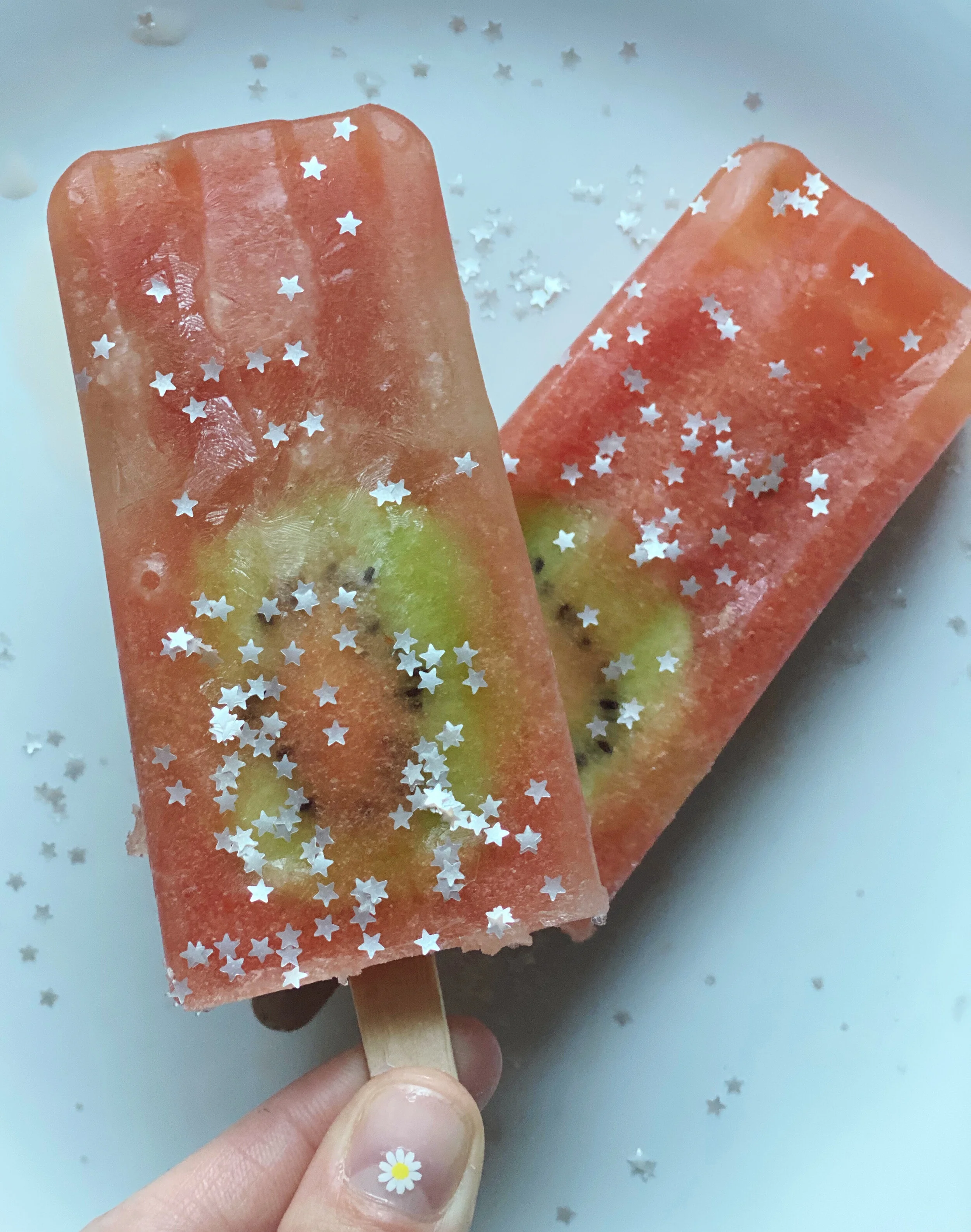 These edible stars don’t have any flavor, but made the popsicles 100x cuter! :) Highly recommend.