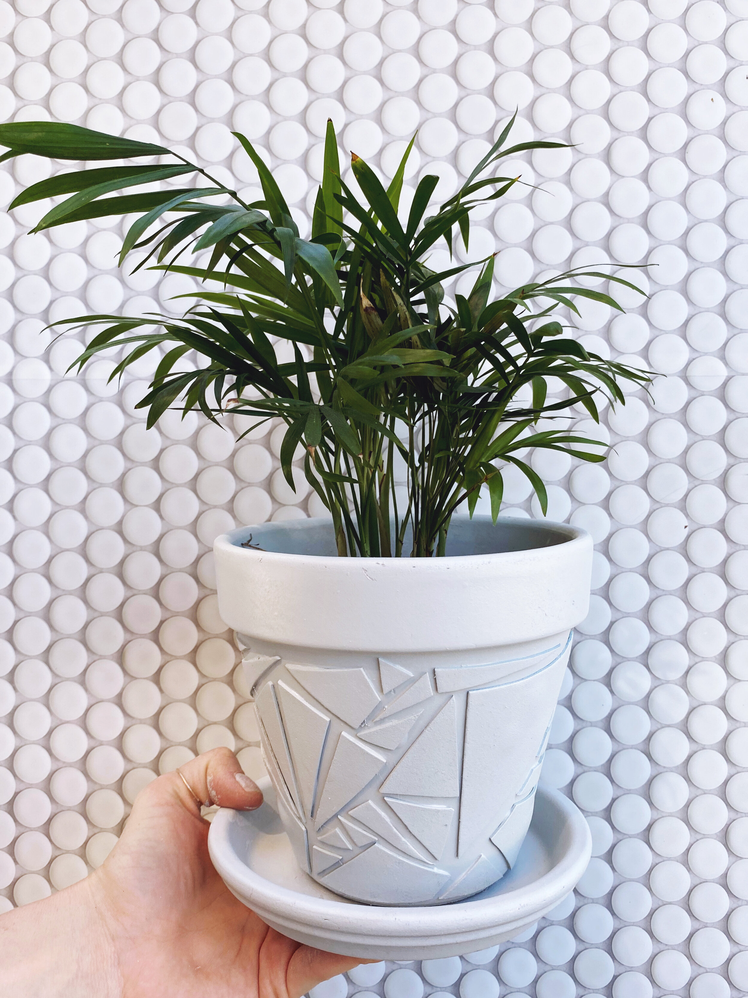 When the glue is dry, you can spray paint the pot and water dish with your desired color. I love this Matte Iced Gray, and I use it for everything!