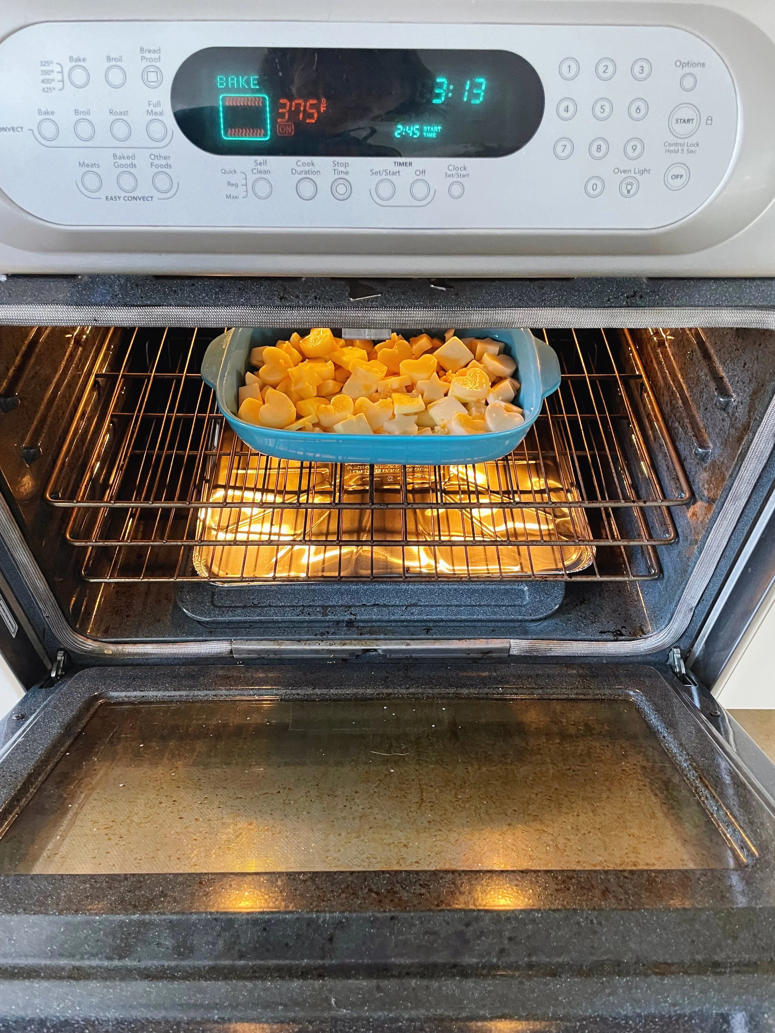 Step 5: Bake for 50-55 minutes. Remove from oven and top with parmesan cheese. Place back in oven for about 10 minutes or until cheese is melted.