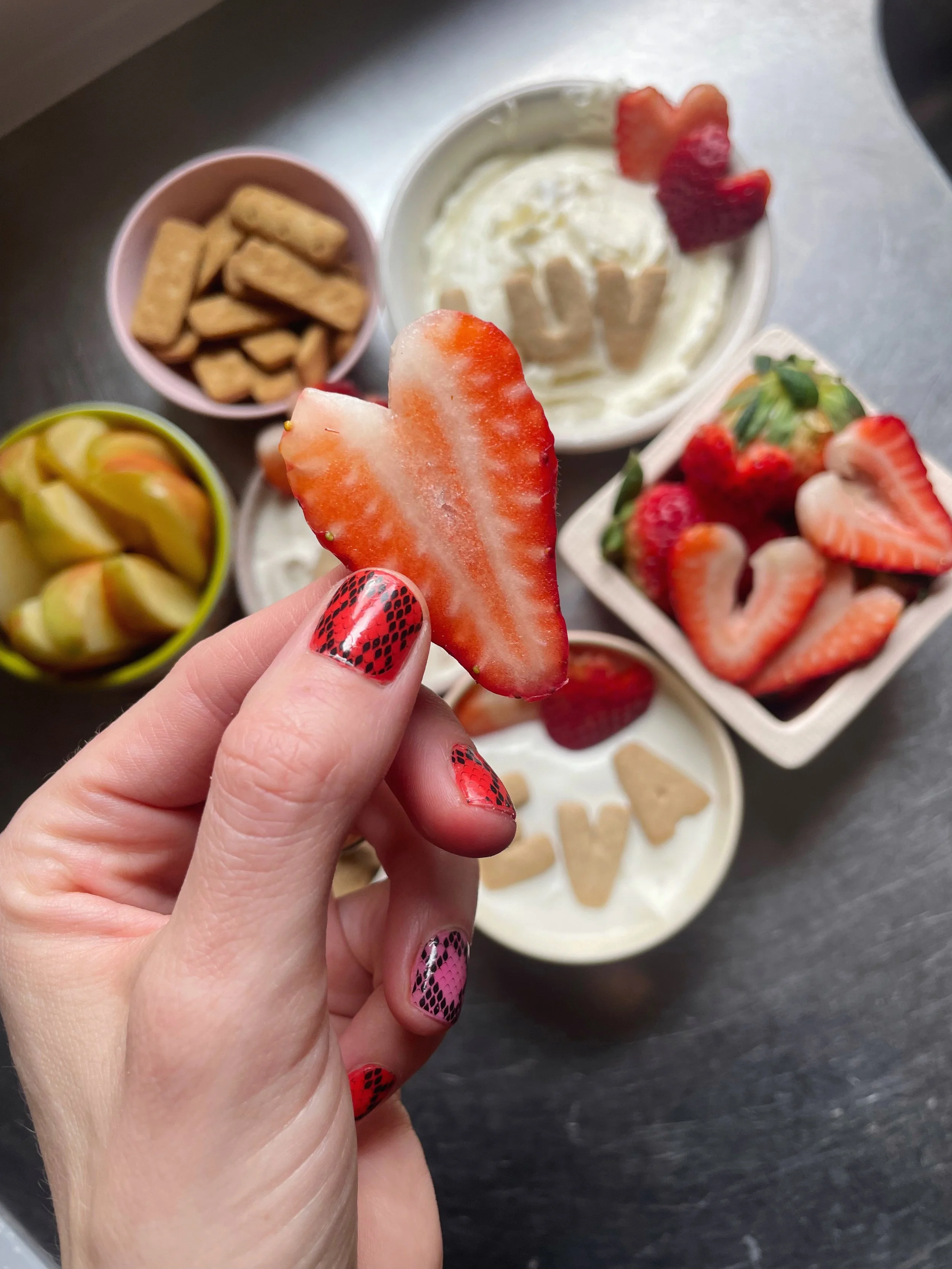 Valentine’s Day is almost here, and I have three easy dip options for your heart-shaped strawberries! I also serve these with graham crackers, and as my sister-in-law would say, “Throw in jicama if you’re feeling crazy.” She knows I’m always feeling crazy. She’s the best.
