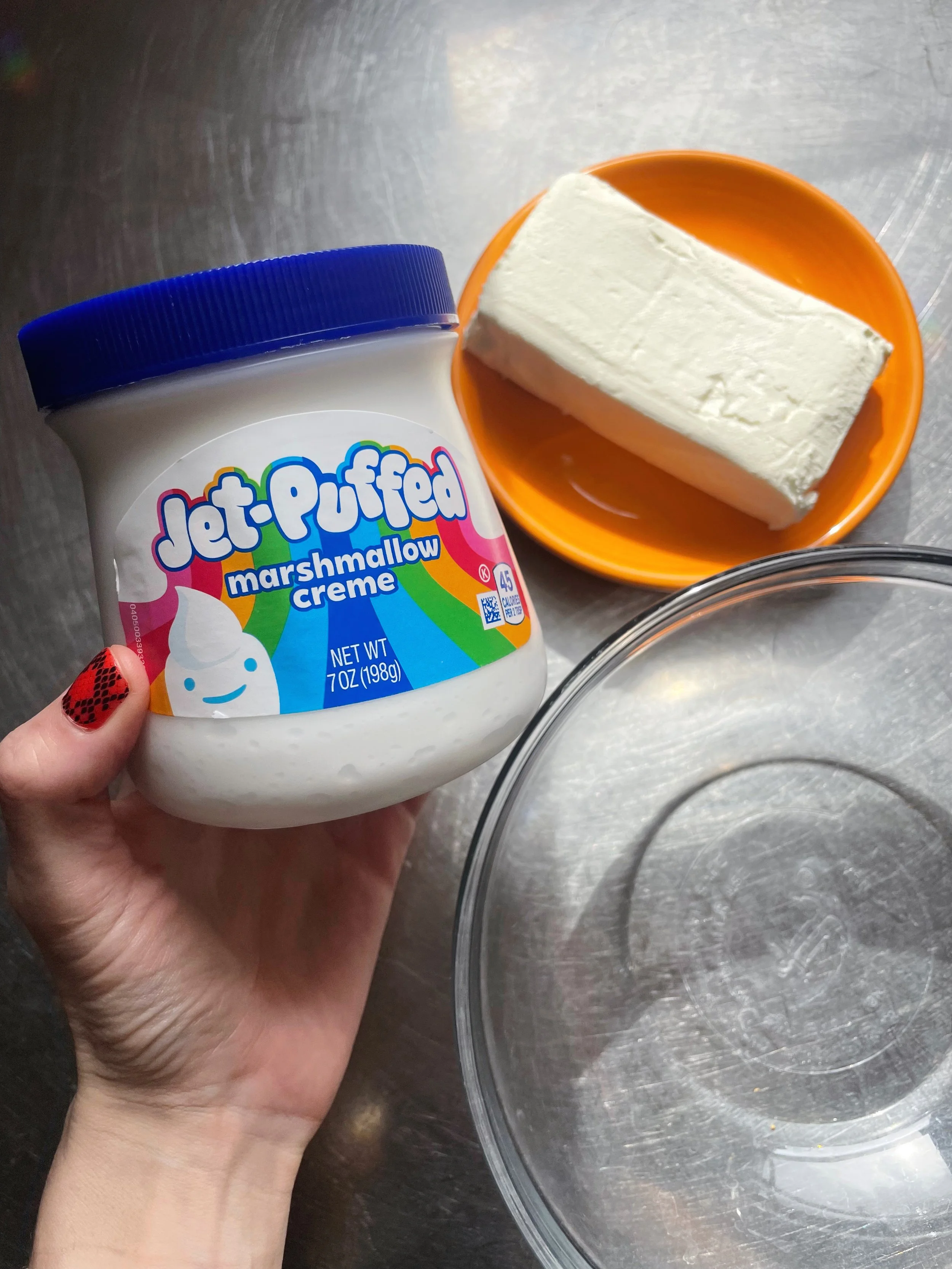 My third fruit dip, uses just four ingredients. It isn’t whipped marshmallow, but it will do.
